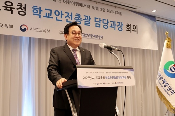 이미지 확대보기학교안전공제중앙회는 지난 26일부터 1박 2일 동안 울산 머큐어앰배서더 호텔 3층 마르세유홀에서 교육부, 시⸱도교육청 학교안전총괄 담당관 80여 명이 참석한 가운데 ‘시⸱도교육청 학교안전총괄 담당 과장 회의’(이하 과장회의)를 개최했다.