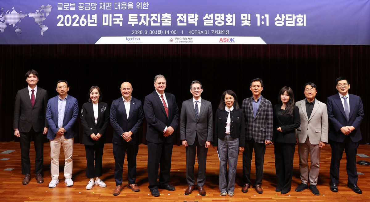 이미지 확대보기대한무역투자진흥공사(코트라)가 지난 30일 염곡동 본사에서 주한미국대사관, 주한미국주정부대표부협회(ASOK)와 공동으로 ’미국 투자진출 전략 설명·상담회‘를 개최했다.