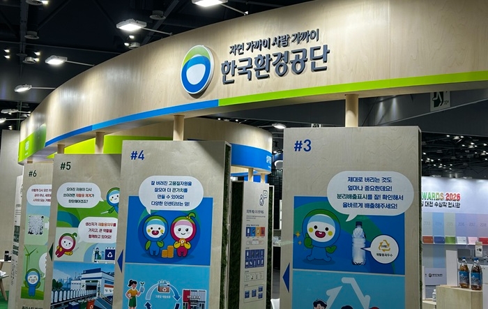 이미지 확대보기한국환경공단이 이달 3일까지 경기 고양시 킨텍스 제1전시장에서 개최되는 ‘ESG 지속가능 패키징 페어 2026’에 참가해 포장재 자원순환 제도 홍보 부스를 운영한다.