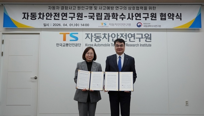 이미지 확대보기한국교통안전공단(TS)은 지난 1일 TS자동차안전연구원(KATRI)에서 국립과학수사연구원과 함께 ‘자동차 결함 사고의 원인 규명 및 사고 예방 연구를 위한 업무협약(MOU)’을 체결하고, 자동차사고 조사분야 협력을 강화하기로 했다.