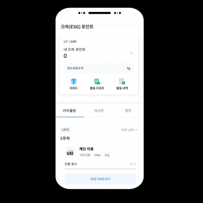 이 프로그램은 임직원의 일상 속 행동을 ESG 활동으로 연결해 포인트와 탄소저감 효과로 환산하는 모바일 참여형 제도다. 프로그램 기간은 다음 달 13일부터 9월 30일까지 약 6개월간 운영된다.
