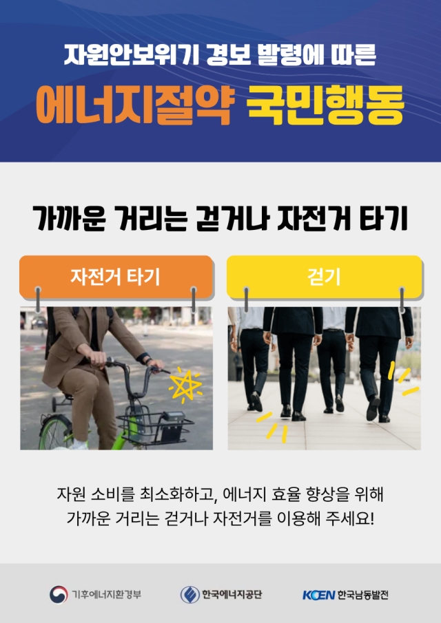 남동발전 관계자는 “수송 부문 에너지 절약은 국민 한 분 한 분의 참여가 국가 에너지 안보와 직결되는 핵심적인 부분”이라며 “가까운 거리는 차 열쇠 대신 운동화를 챙기는 작은 변화에 적극 동참해 주시길 부탁드린다”고 당부했다.