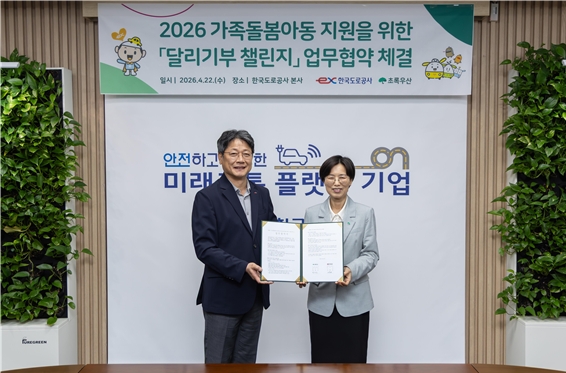 한국도로공사가 22일 초록우산과 함께 경북 지역 가족돌봄아동 지원을 위한 ‘2026 달리기부 챌린지’ 업무협약을 체결했다