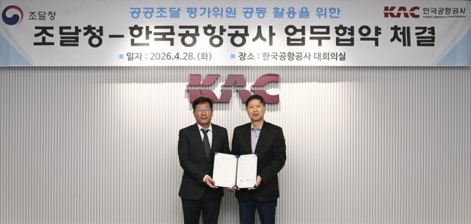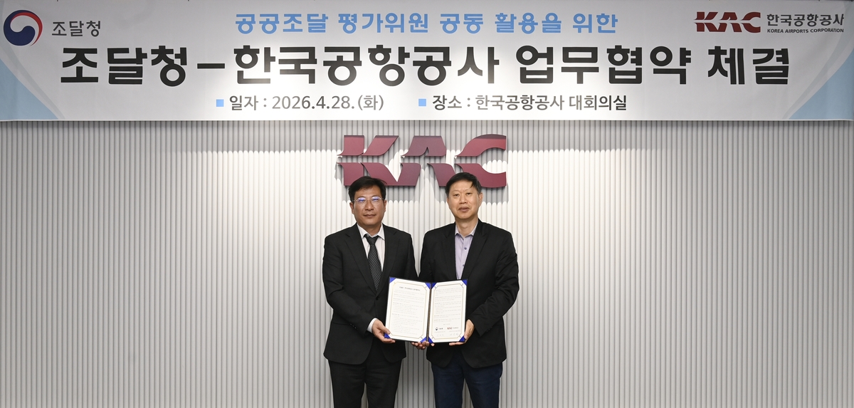 한국공항공사는 28일 서울 강서구 본사에서 조달청과 ‘제안서 평가위원 공동 활용을 위한 업무협약(MOU)’을 체결했다.