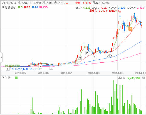 국동은 지난해 말 1815원 으로 시작해 지난 10월 2일 8900원에 장을 마쳐 395.32% 상승한 것으로 나타났다. 한국화장품도 지난해 말 1465원 시작해 지난 2일 장마감가 6590원을 기록해 5025원(343%) 올랐다. 국동, 한국화장품 등의 주가 급등은 실적 호전에 따른 것으로 시장은 보고 있다. 덧붙여 한국화장품의 경우 ‘요우커’로 불리는 중국 관광객 급증에 따라 실적 상승 기대감이 작용한 것으로 보인다. 이 외에도 현대리바트(281.12%) · 금강공업(279.53%) · MH에탄올(257.26%) · 이월드(236.24%) · 키스톤글로벌(225.13%) · 효성ITX(216.93%) · 조광피혁(209.71%) · 삼양통상(206.51%) 등이 대폭 상승했다. 코스닥 시장에서는 신성엘엔에스(659.04%) · 컴투스(575.35%) · 선데이토즈(379.9%) · 동화기업(365.89%) · 대한뉴팜(320.07%) · 아이리버(312.33%) 등 6개 기업이 300% ~ 659.04%까지 급등한 것으로 나타났다. 유가증권시장에서 주가가 급등한 30개 종목은 모두 시가총액 101위 미만 중·소형주인 것으로 나타났다. 금융투자업계 에서는 실적 호전에 대한 기대감과 과 가격적 부담이 적은 중·소형주 중심의 종목 장세가 이어져 온 것이 원인으로 보고 있다.