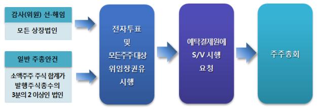 자본시장법 개정안이 국회를 통과함에 따라 상장법인이 전자투표 및 모든 주주를 대상으로 의결권 행사를 권유 한 경우에 한하여 “감사(위원) 선·해임” 및 “금융위 고시 기준에 해당하는 법인의 안건”에 대해서는 섀도보팅의 적용이 가능하다.