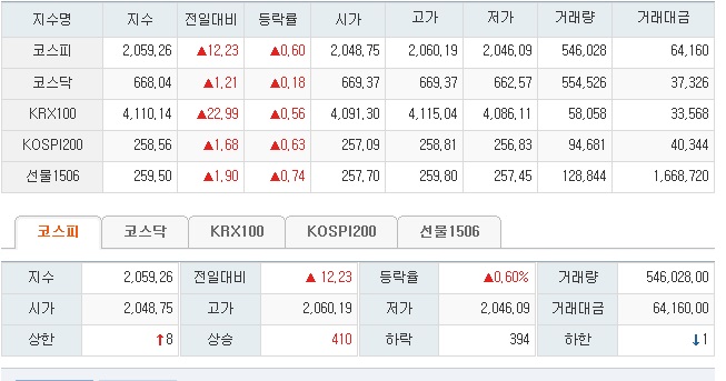 지수는 장중 2060.19까지 오르면서 2060선을 터치했으며 이날 연중 최고치를 다시 한번 경신했다. 2050선을 넘어선 것은 지난해 9월19일(2,053.82) 이후 7개월만이다.