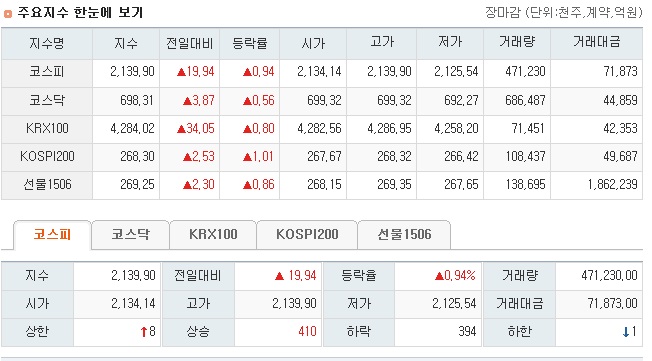 이런 가운데 전 거래일보다 14.18포인트(0.67%) 오른 2134.14에 출발한 코스피는 외국인이 3679억원 매수 우위를 보인 반면 개인과 기관은 각각 1048억원과 2600억원 순매도였다. 프로그램으로는 총 528억원이 유입됐다.