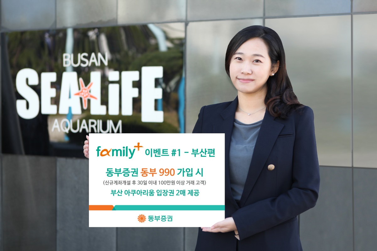 동부증권 홈페이지나 SEA LIFE 부산아쿠아리움 홈페이지에서 패밀리플러스 이벤트를 신청하고 영업점이나 새마을금고에서 동부990 증권계좌를 신규 개설한 후 30일 이내에 해당 계좌로 100만원 이상 거래한 고객은 SEA LIFE 부산아쿠아리움 2인 입장권을 제공받을 수 있다.