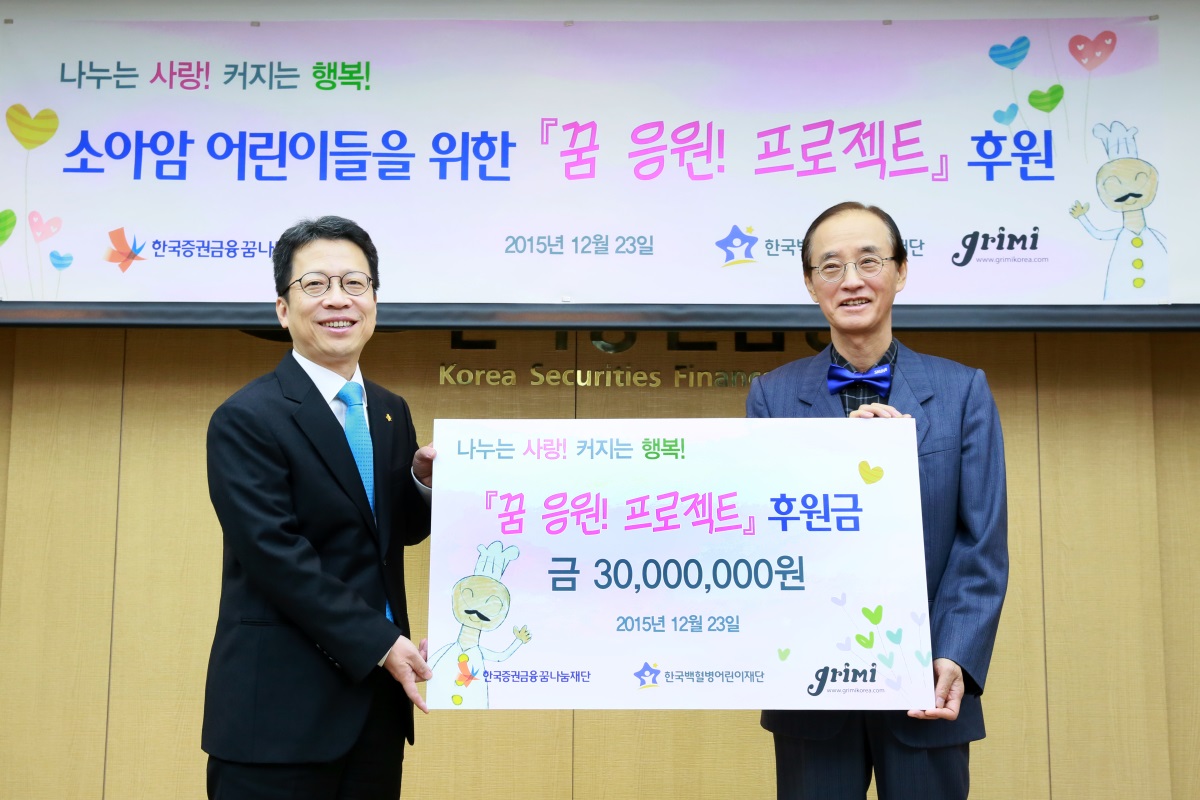 한국증권금융 임직원들은 지난 2010년부터 매년 소아암 어린이들의 치료를 위해 총 1억5000만원의 수술비를 지원해왔다.