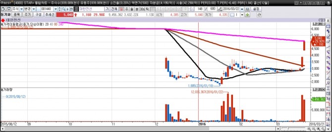 대한전선은 지난 18일에 이어 21일에도 상한가를 기록했습니다. 겉으로 드러난 건 관리종목 탈출이 맞다고 보여 집니다. 잘못하면 상장폐지를 당할 수 있는 종목인데 그 불안 요인이 해소됐으니 호재는 분명합니다.