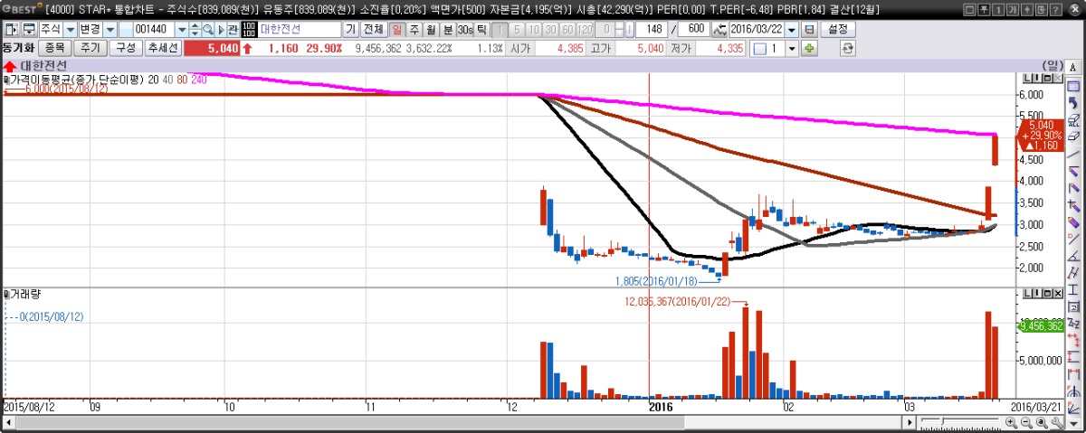 이미지 확대보기그러나 대한전선이 코데즈컴바인이나 양지사, 팀스, 등 최근에 급등했던 종목과 같이 ‘품절주’로 분류하는 것은 의문입니다.