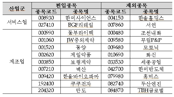 하지만 경동제약, 피에스케이, 이라이콤, SBS콘텐츠허브, 슈프리마에이치큐, 데브시스터즈, 골프존, KCC건설, 디엔에프, 신진에스엠 등은 제외된다.