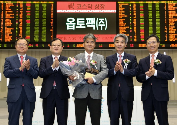 [글로벌이코노믹 최성해 기자] 한국거래소 코스닥시장본부는 20일 오전 8시 30분부터 서울사옥 홍보관에서 이미지센서 패키징업체인 옵토팩의 코스닥시장 신규상장기념식을 개최했다.