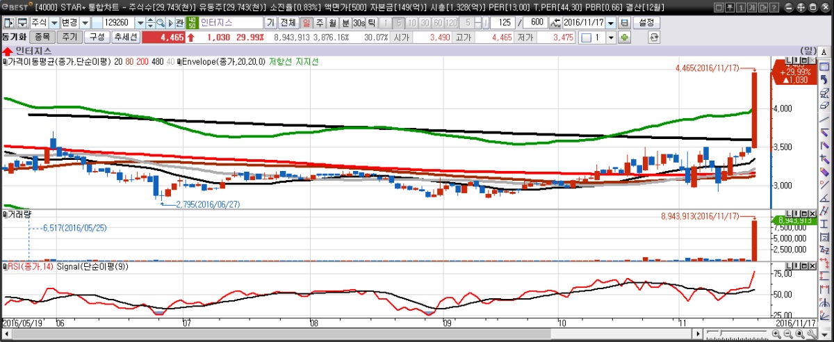 이미지 확대보기동국제강의 주요 계열사인 인터지스는 사외이사가 이재명 시장과 사법연수원 동기라는 소문이 퍼지며 급등했다. 대량거래가 터지며 480일 이동평균선도 가볍게 돌파했다.