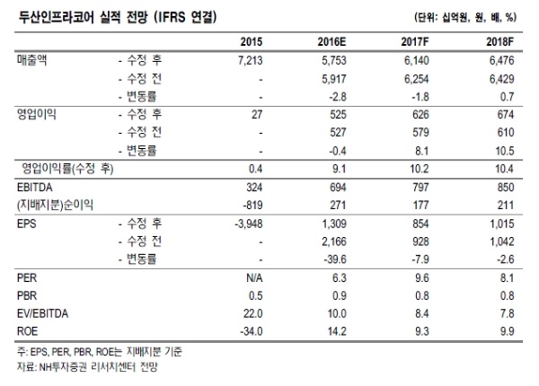 하지만, 2017년 11월에 두산밥캣 지분이 매각이 가능하며 이에 따른 재무구조 개선으로 이익창출이 가능함을 감안하면 현재 주가는 저평가되어 있다는 진단이다.