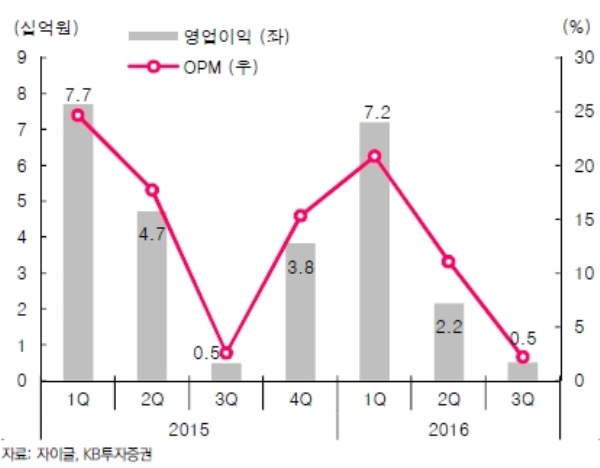 3Q16에는 매출은 22% YoY 성장했으나, 영업이익이 3% YoY 증가하는 데 그치는 등 두 개 분기 연속 실적이 부진했다