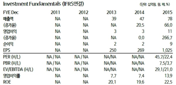 이미지 확대보기2016년 매출액 1291억원(+66.6%YoY), 영업이익 226억원(+109.7%YoY)으로 추정된다.