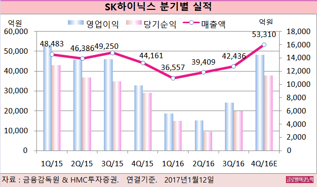 SK하이닉스는 올해 1분기의 경우 핵심 캐시 카우(Cash Cow)인 DRAM 가격 상승세가 가파르다는 점에서 1분기 영업이익이 사상 최고치인 2015년의 1분기 1조5885억원을 경신할 것으로 보인다.