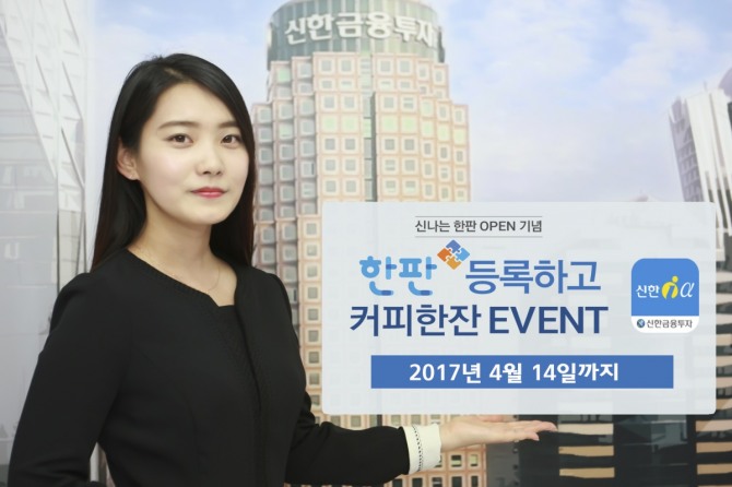 신한금융투자는 신나는 한판 서비스 등록 고객을 대상으로 ‘한판 등록하고, 커피 한잔’ 이벤트를 오는 4월14일까지 진행한다고 13일 밝혔다.