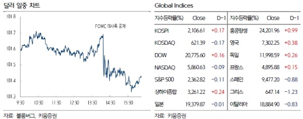 서상영 키움증권 연구원은 “ 일부 위원이 금리인상가능성은 언급한 점이 부담이 되었다”라며 “이는 23일 국내 증시에도 부담으로 작용할 가능성이 높다는 판단이다”고 말했다.