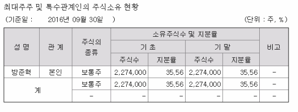 방준혁 의장은 상장을 추진중인 넷마블게임즈의 지분 약 24.5%를 보유중인 최대주주이기도 하다.