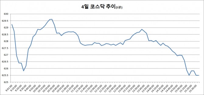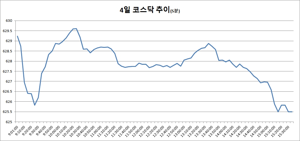 4일 코스닥은 전거래일대비 3.03포인트(0.48%) 오른 625.49로 마감했다.