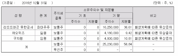 디에스티로봇의 3대주주 겸 코아로직의 대주주인 리드드레곤은 차이나오션인더스트리그룹(CHINA Ocean Industry Group)을 통해 지분 50%를 보유할 예정이다.