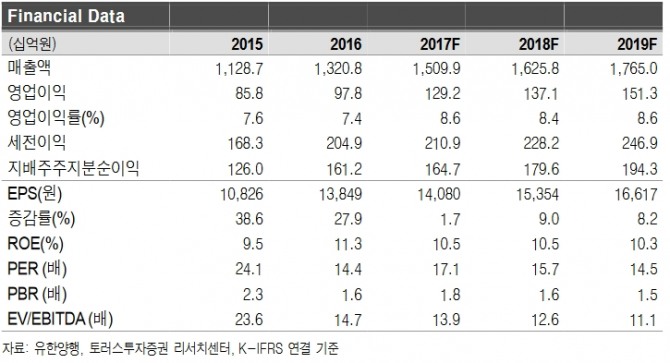 이미지 확대보기전상용 토러스투자증권 연구원은 "도입신약을 중심으로 한 ETC 부문의 성장이 실적을 견인할 것"이라며 "도입신약은 이 회사 전체 매출액의 26.6%를 차지하며 지난 2012년부터 3년간 연평균성장률(CAGR) 18.2%의 가파른 성장세를 지속하고 있다"고 밝혔다.