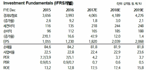 2016년말 5.3%까지 상승하며 실적 개선에 일조했던 자보 M/S가 올해 1~4월 5.0~5.1%로 하락했다.