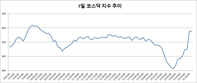 이미지 확대보기7일 코스닥은 전거래일대비 0.02포인트 내린 663.77로 마감했다. 지수가 약세를 보인 것은 지난 4일 이후 3거래일만에 처음이다.