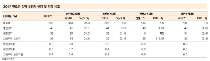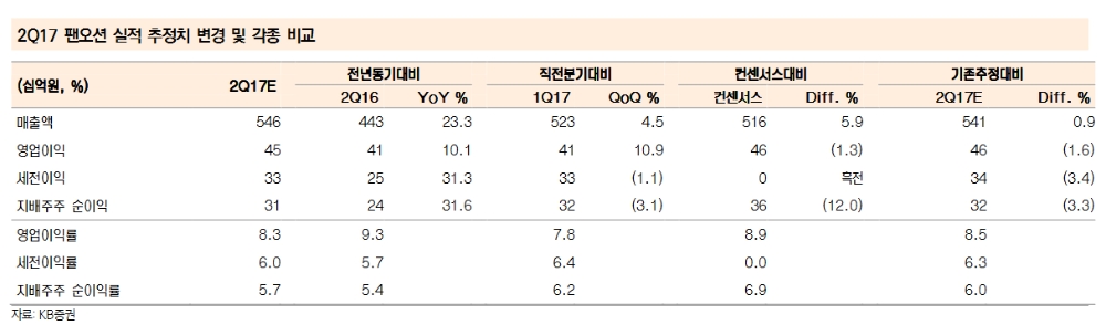 이미지 확대보기강성진 KB증권 연구원은 "팬오션의 2분기 매출액은 전년대비 23.3% 늘어난 5462억원, 영업이익은 10.1% 증가한 454억원을 기록할 것"이라며 "벌크선 시황 개선에 힘입어 영업실적이 증가할 것"이라고 밝혔다.