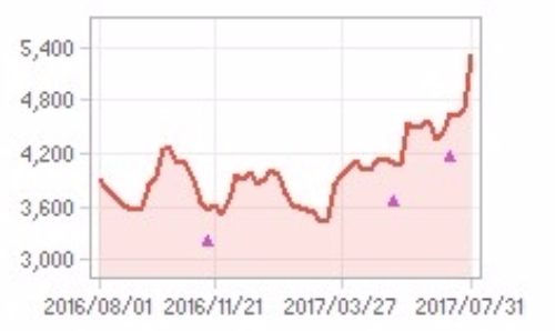 같은 시간기준으로 상한가의 경우 유가증권시장에서는 서울식품우 7만5000원 29.98%로 가격제한폭까지 올랐다.