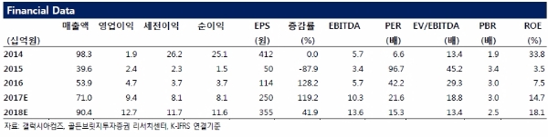 이에 다라 ‘17년 말 기준 30만명, ‘18년 상반기까지 50만명 도달은 무리 없다고 판단한다. ‘18년 하반기부터 의미 있는 매출이 발생할 것으로 추정된다.