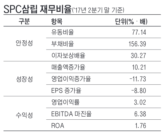 지표상 유동비율과 부채비율 등이 떨어져 보이는 이유는 이 회사가 대규모 설비투자가 요구되는 장치산업인 제빵사업을 주 업으로 하고 있기 때문으로 풀이된다.