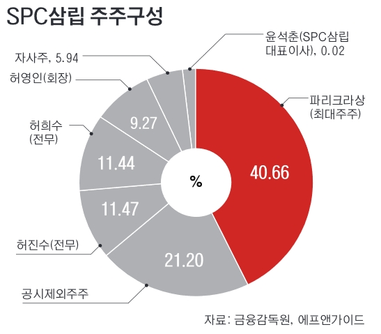 지분 구조를 살펴보면 이 회사의 최대주주는 파리크라상으로 지분 40.66%를 보유 중이다. 파리크라상은 SPC그룹의 지주사로 SPC삼립, 샤니, SPC, 비알코리아를 지배하는 형태를 띠고 있다.