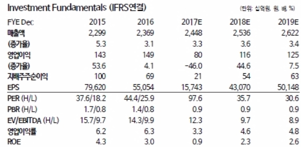 차재헌 동부증권 연구원은 "지주회사 전환시 투자지분 가치가 보다 객관화될 수 있고 보유하고 있는 부동산 가치가 상당하다는 점은 추가적 주가 하락을 방어할 것으로 판단한다”며 “다만, 영업실적 개선은 예상보다 시간이 소요될 것으로 판단하며, 당분간 목표주가를 변화시킬 만한 실적 추정치 상향은 어려워 보인다”고 말했다.
