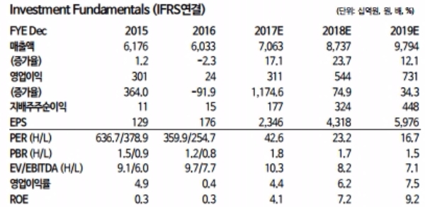 권성률 동부증권 연구원은 "3Q17 영업이익은 1184억원으로 67.5%QoQ 증가할 전망이다. 영업이익의 단위가 바뀌면서 이익의 증가 폭이 바뀐다”며 “부진했던 사업부는 회복되고, 모멘텀이 있는 사업부는 더 견조해지고 있어 이익의 질도 좋아 주가가 조정을 받을 때마다 비중을 확대하는 전략이 최선이다”고 말했다.