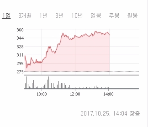 이미지 확대보기유가증권시장에서 서울식품은 25일 오후 1시 41분 현재 전날보다 26.52% 상승한 353원에 거래되고 있다.