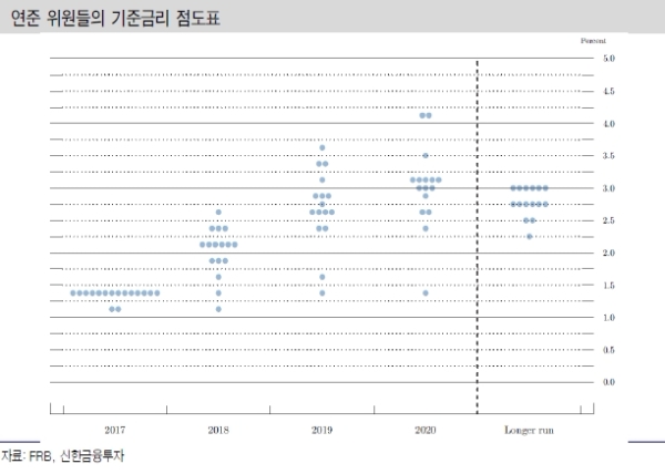 이번 12월 FOMC는 전체적으로 시장의 예상에 부합했다는 평이다. 내년 금리인상 속도의 단서를 제공하는 연준 위원들의 점도표도 거의 변화가 없었다.