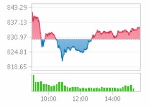 코스닥은 이날 장 초반 외국인 매수에 힘입어 전일 대비 7.64포인트(0.92%)상승한 837.63으로 출발했다. 오전 10시 30분 829.93으로 하락 전환하면서 830선을 하회했지만 오후 12시 42분 이내 830.29으로 반등하며 다시 상승세를 이어갔다.