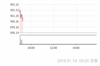 19일 오전 9시 20분 현재 코스닥은 전일 대비 3.68(0.41%)오른 901.87에 거래중이다.