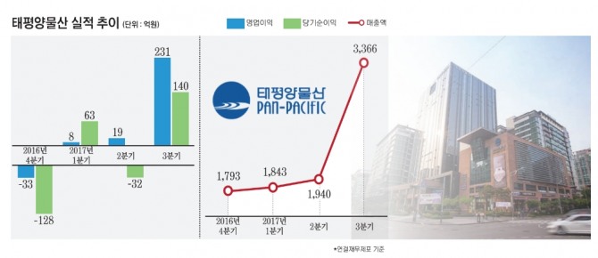 태평양물산은 2016년 4분기에 영업손실(33억원)과 당기순손실(128억원)을 기록했다. 아직 지난해 4분기 실적은 나오지 않았으나 흑자 전환에 성공할 것이라는 기대가 높다.