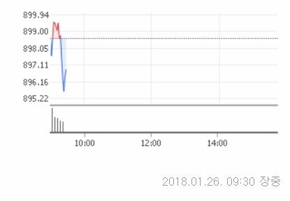 26일 오전 9시 30분 현재 코스닥은 전일 대비 1.66포인트(0.18%)내린 896.94에 거래중이다.