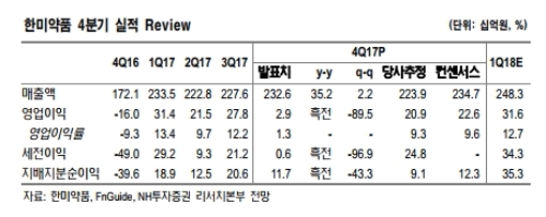 2017년 연간 6종의 개량신약 신제품 발매로 품목 MIX 회복할 전망망이다. 다수의 전임상 파이프라인 신규 임상 1상 개시로 2018년 연간 연구개발비 10% y-y 증가 추정됨에 따라 이익 추정치 대폭 하향조정한다.