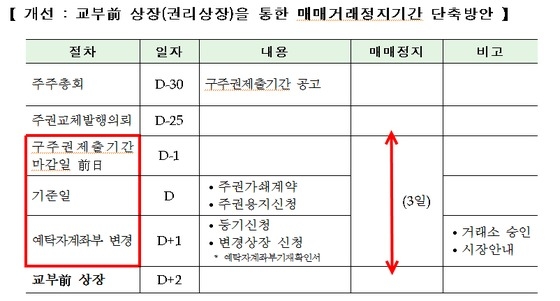 거래소 관계자는 "해당 기업의 변경상장 절차를 교부 전 상장으로 유도하고 관련 공시 내용을 정정해 매매거래 정지 기간 단축 운영 사항을 투자자에게 안내할 계획"이라고 밝혔다.