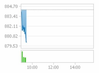 13일 오전 9시 30분 현재 코스닥은 전일대비 4.27포인트(-0.48%) 내린 880.00에 거래중이다.