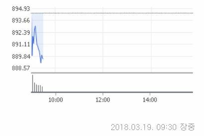 19일 오전 9시30분 현재 코스닥은 전거래일대비 5.30포인트(0.59%)내린 889.13에 거래중이다. 전체 거래량은 1억7777만주를 기록중이다.