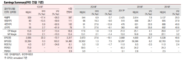 넷마블게임즈의 1Q18 매출액과 영업이익은 각각 5086억원(-17.4%qoq, -26.0%yoy), 801억원(-13.5%qoq, -59.9%yoy)으로 전망한다.