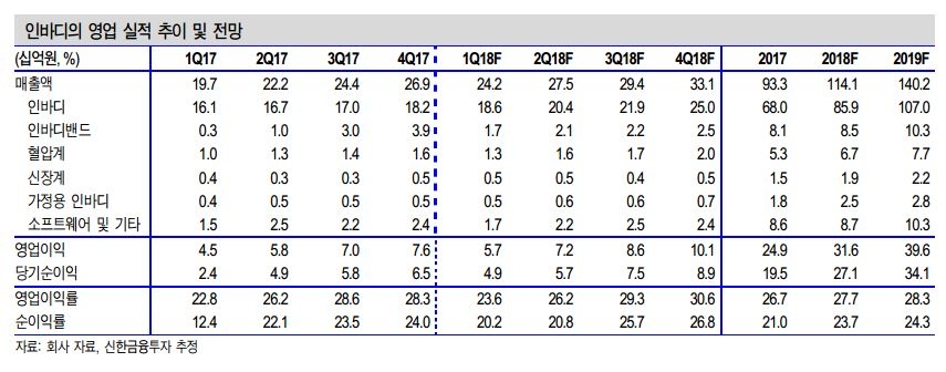신한금융투자는 10일 인바디에 대해 "내수는 전문가용 인바디 판매가 외형 성장을 견인하고, 해외 사업은 직영점을 확대한 영향을 반영할 것"이라며 투자의견 '매수'와 목표주가 5만5000원을 유지했다.